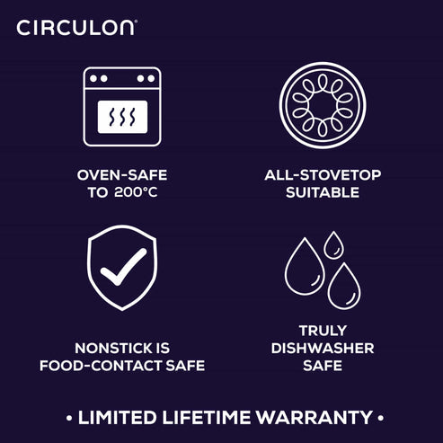 From the inventors of hard-anodised nonstick cookware comes Circulon ScratchDefense™, introducing a new level of scratch resistance, durability, and nonstick performance. This advanced ScratchDefense™ technology applies aerospace-grade durability to eliminate scratching, sticking, and flaking for Circulon’s most advanced nonstick cookware yet.