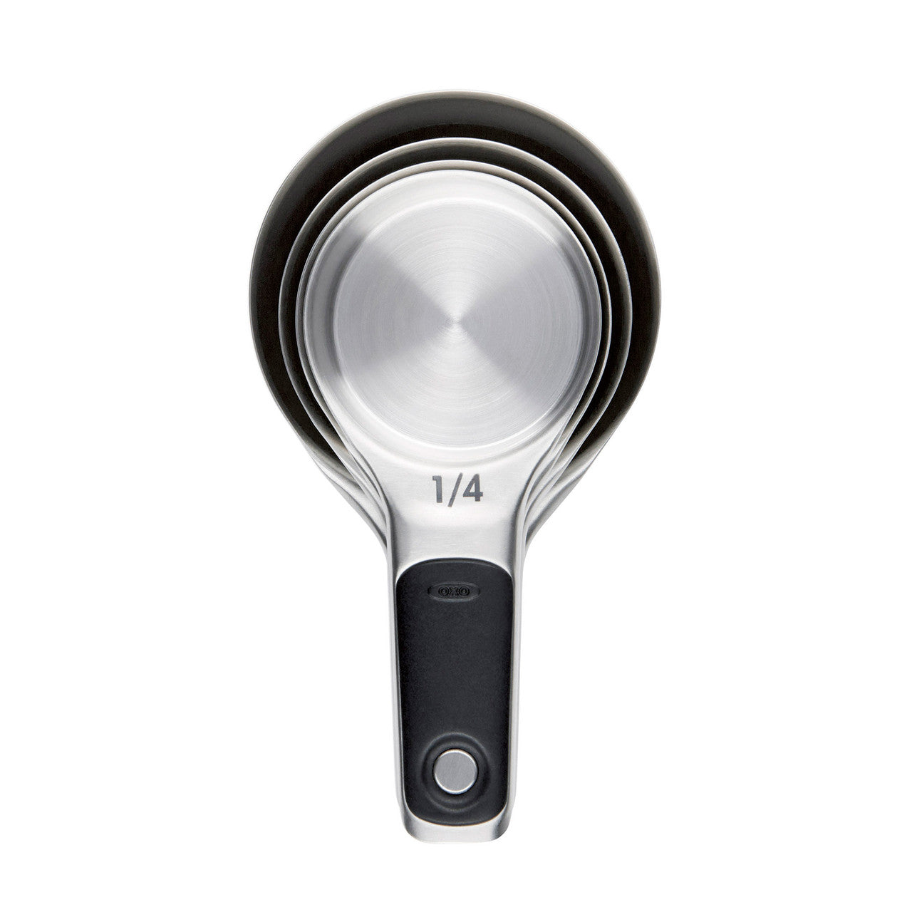 - Set includes: 1/4 cup (60ml), 1/3 cup (80ml), 1/2 cup (125ml) and 1 cup (250ml)