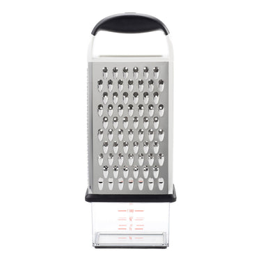 The OXO Good Grips Box Grater is designed to handle a wide range of grating jobs—from shredding hard cheeses to julienning vegetables and zesting citrus. Its multi-surface stainless steel blades offer coarse, medium, fine and zesting options to help you work fast and efficiently. The soft, non-slip handle provides a comfortable grip and the non-skid base keeps the grater steady on countertops. The Box Grater’s large working surface and sturdy construction make it ideal for regular use and it’s dishwasher safe for easy cleanup.