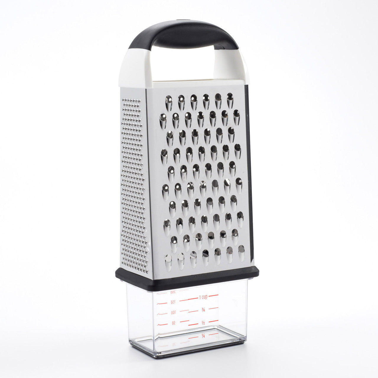 - Multi-surface stainless steel blades for coarse, medium, fine and zest grating
