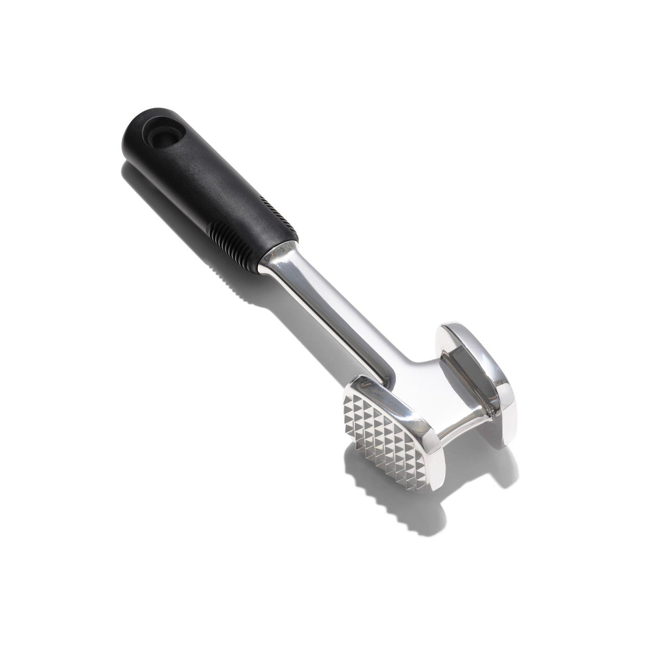 The OXO Good Grips Die Cast Meat Tenderizer helps you easily flatten and tenderize meats for burgers, steaks, schnitzels and more. The heavy-duty die cast head delivers powerful force, while the soft, comfortable non-slip handle gives you secure grip and excellent control. Its durable construction is built for everyday kitchen use.