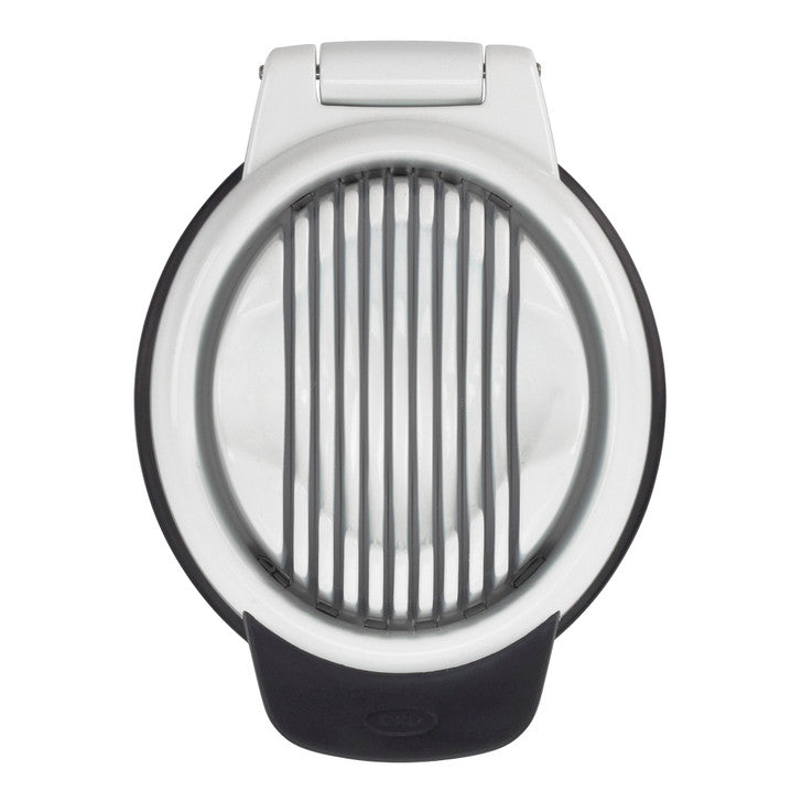 The OXO Good Grips Egg Slicer makes it easy to slice hard-boiled eggs into even, consistent pieces for salads, sandwiches, deviled eggs and more. Stainless steel wires cut cleanly through eggs without squashing, and the soft, non-slip handles provide comfortable control. After slicing, the slicer opens so you can easily lift away the cut servings. Dishwasher safe for quick cleanup.