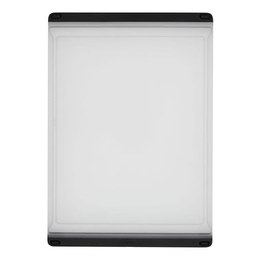 The OXO Good Grips Everyday Cutting Board is designed for daily chopping, slicing and dicing. Its durable cutting surface withstands regular kitchen use, while the non-slip edges keep the board firmly in place on countertops. A built-in juice groove helps catch liquids and prevent messes, making food prep cleaner and easier.