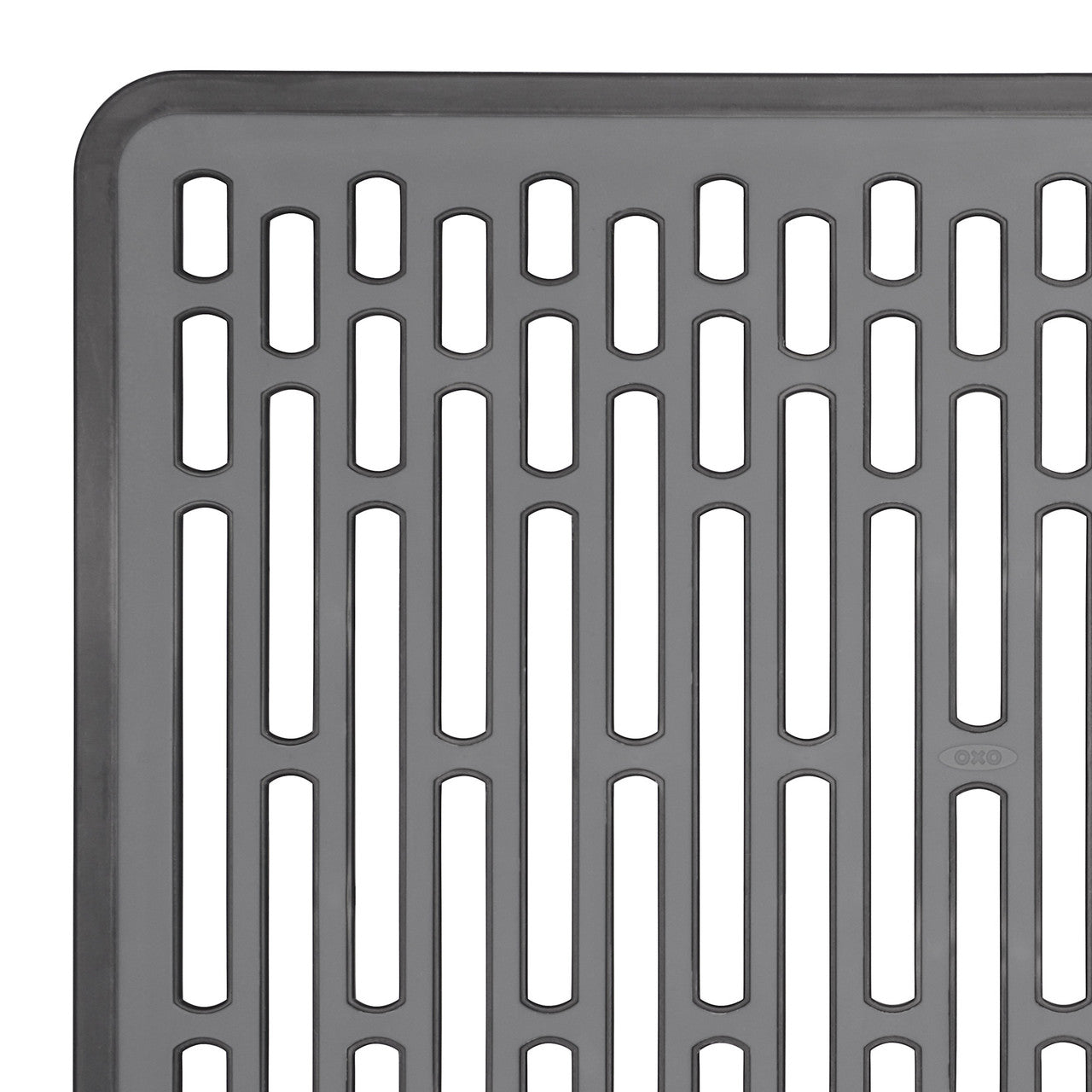 The OXO Good Grips Sink Mat – Small protects your sink and dishware from chips, scratches and damage. Made from soft yet durable silicone, it provides a cushioned surface that helps keep plates, glasses and cookware safe during washing and rinsing. Non-slip silicone feet keep the mat securely in place at the bottom of the sink, while the elevated design allows water to circulate for faster drying.