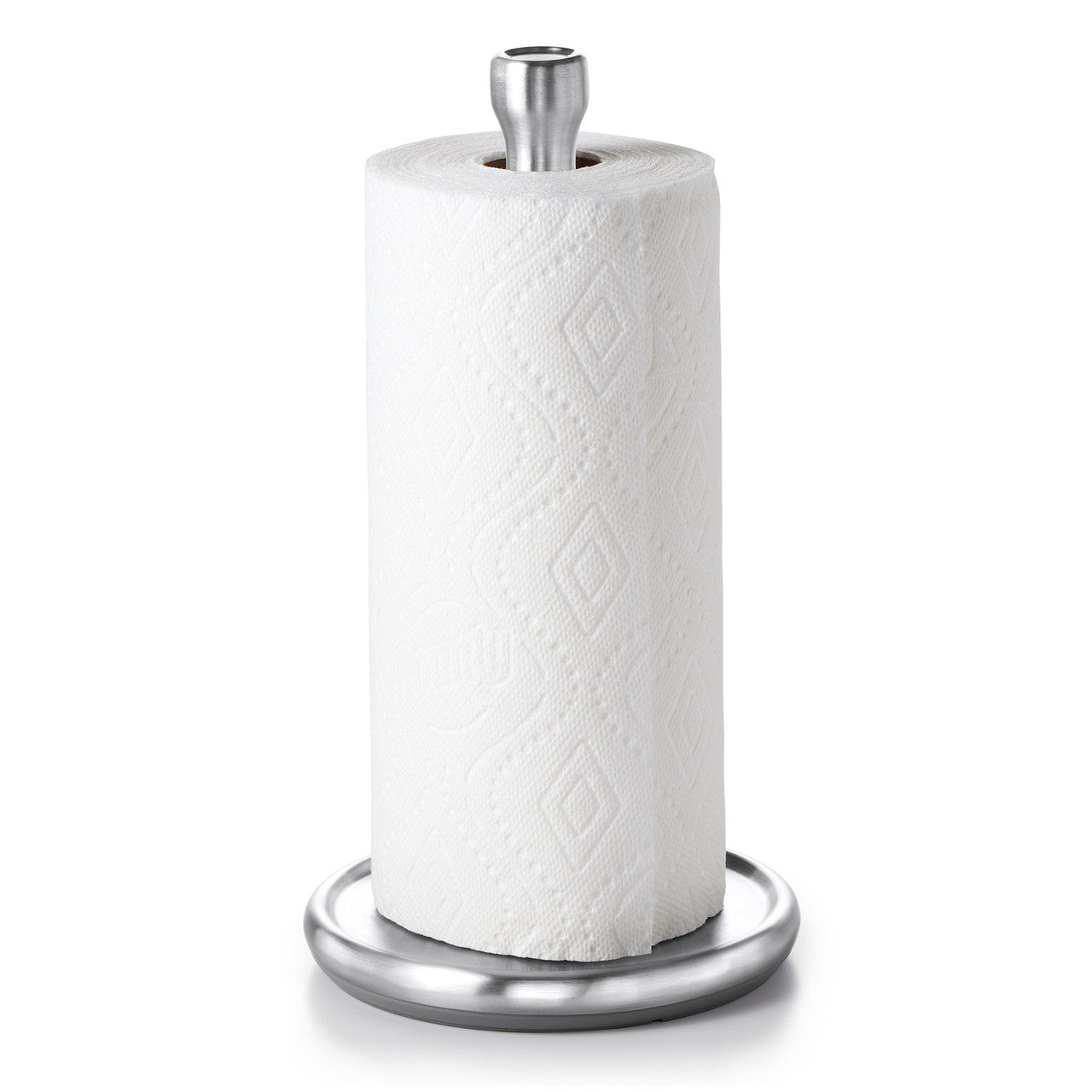 The OXO Good Grips Steady Paper Towel Holder is engineered for effortless one-handed tearing, making quick clean-ups far easier. Smooth rotation lets you pull the exact amount you need each time, while the raised lip keeps even jumbo-sized rolls securely in place. A weighted, non-slip base adds stability, and the sleek stainless steel construction complements a range of kitchen styles.