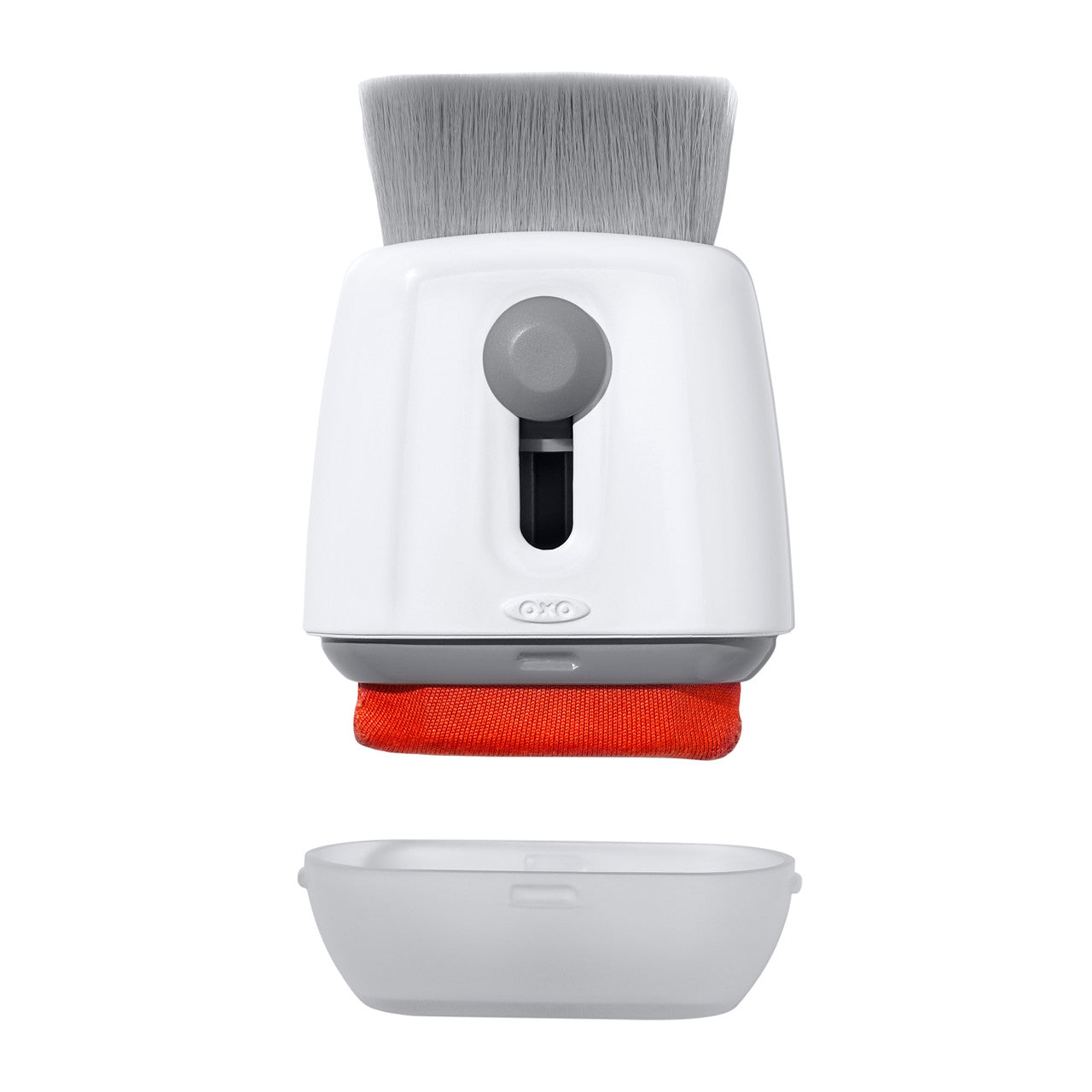 The OXO Good Grips Sweep & Swipe Laptop Cleaner is designed to keep laptops, tablets, smartphones and other devices free from crumbs, dust, smudges and fingerprints. The retractable brush sweeps away dirt and debris from keyboards and tight spaces, while the specially shaped microfiber pad reaches into corners and across screens to remove oils and marks effectively.