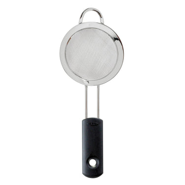 The OXO Good Grips Mini Strainer is ideal for draining small amounts of liquid from sauces, soups and dressings. Its fine mesh surface captures small particles while allowing liquids to pass through, and the soft, comfortable non-slip handle provides secure control. Convenient hanging hole allows easy storage, and this strainer is dishwasher safe for quick cleanup.
