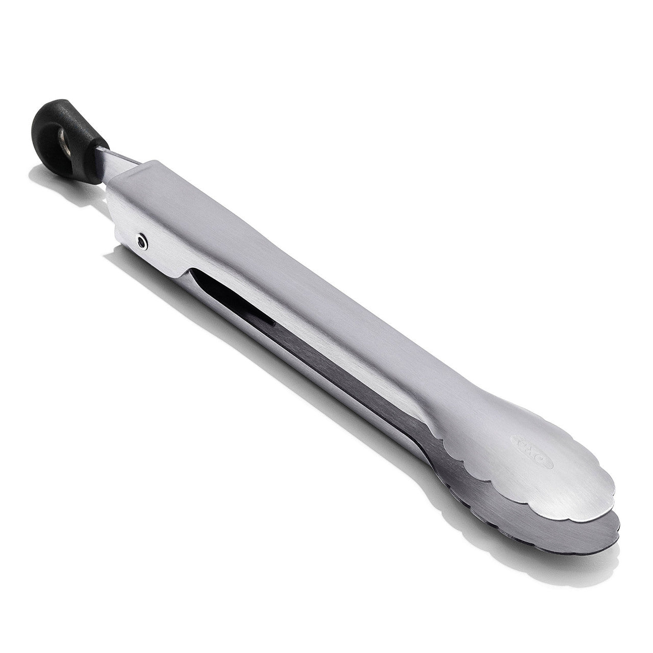 The OXO Good Grips Mini Tongs are compact, versatile tools for gripping and serving small foods like salads, pasta, vegetables and snacks. Their ergonomic non-slip handles provide secure control, and the scalloped tips ensure a strong hold on a variety of foods. Convenient hanging hole allows for easy storage, and these tongs are dishwasher safe for everyday use.