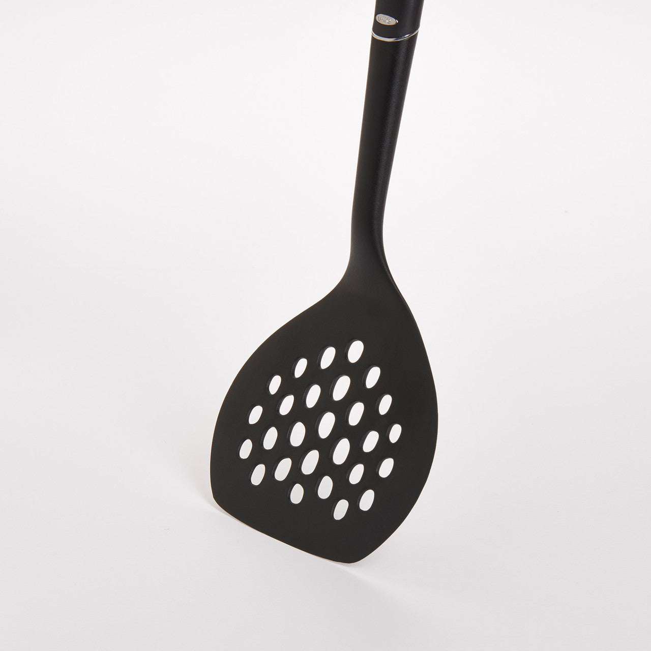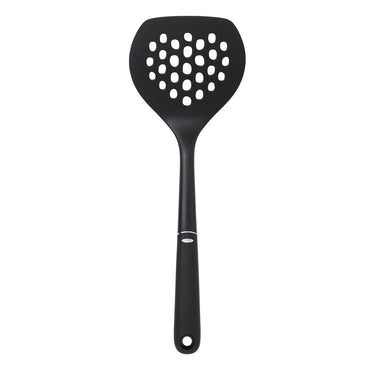 The OXO Good Grips Round Turner is designed to flip, lift and serve foods with ease while protecting non-stick cookware. Its round, thin head slides easily under delicate foods like pancakes, eggs and fish. The soft, comfortable non-slip handle gives you a secure grip and excellent control. A convenient hanging hole makes storage simple.