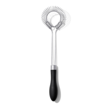 Making silky-smooth sauces shouldn’t be hard. We designed the OXO Good Grips Sauce & Gravy Whisk to break up clumps while you cook, for professional-grade sauces at home. Use it flat to prep pans for deglazing or angled to whisk together ingredients for gravy, custards or eggs. The angled head reaches into the edges of pots and pans to keep things moving and prevent overheating. The long handle allows you to work comfortably even in high-walled pans, while the soft, non-slip grip absorbs pressure so your hands don't get tired. The solid stainless steel wires prevent sticking and are ideal for deglazing pans with less effort. Dishwasher safe.