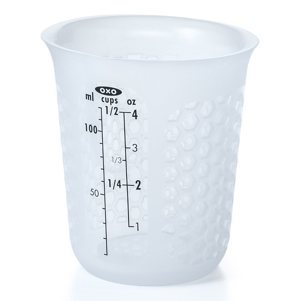 With a flexible body and spout, the Squeeze & Pour Silicone Measuring Cup - Mini makes it easy to mix, measure, microwave and pour all from the same measuring cup. The specialised honeycomb pattern protects your hands by dissipating heat, and a simple squeeze forms a precise pour spout. This flexible silicone cup is microwave safe and ideal for melting butter, chocolate and more.