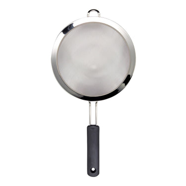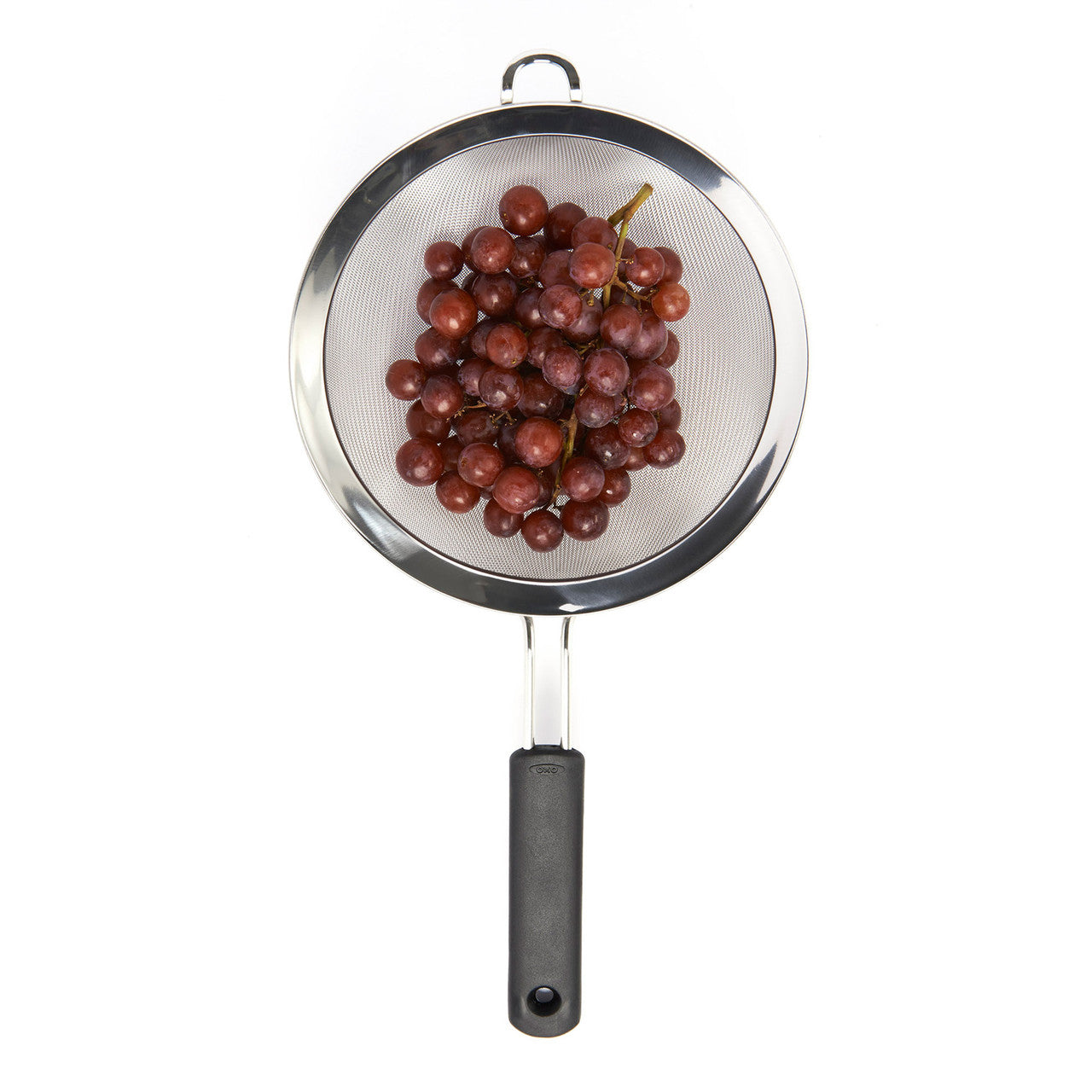 The OXO Good Grips Strainer is designed for everyday kitchen tasks like rinsing fruits and vegetables, draining pasta and sifting dry ingredients. Its fine mesh surface captures unwanted particles while allowing liquids to flow through with ease. The soft, comfortable non-slip handles provide secure grip and control, and the wide rim helps balance the strainer over bowls or pots. Dishwasher safe for quick cleanup.