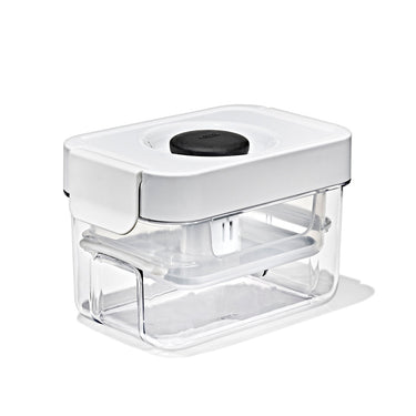 The Tofu Press features a rigid plate that will press your tofu evenly for consistent results and has two pressing strengths to customise tofu to your taste. Start at the first setting, and most water will be pressed out of your tofu after 15 minutes; perfect for setting and letting it do the work while you finish other parts of your meal prep. If you want to press out more water, move on to the second setting. The clear body allows you to check the progress, while the design keeps the tofu out of the extracted water. The pressing knob locks flush with the lid for flat, stackable storage. The Press is easy to disassemble for easy, thorough cleaning and dishwasher safe.