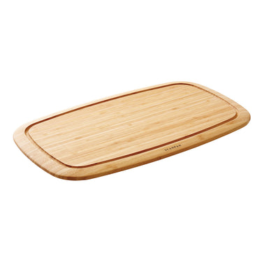 This oil treated, 1.8.cm thick functional bamboo board is elegant and light, easy to handle and store, with a deep groove for collecting juice.
