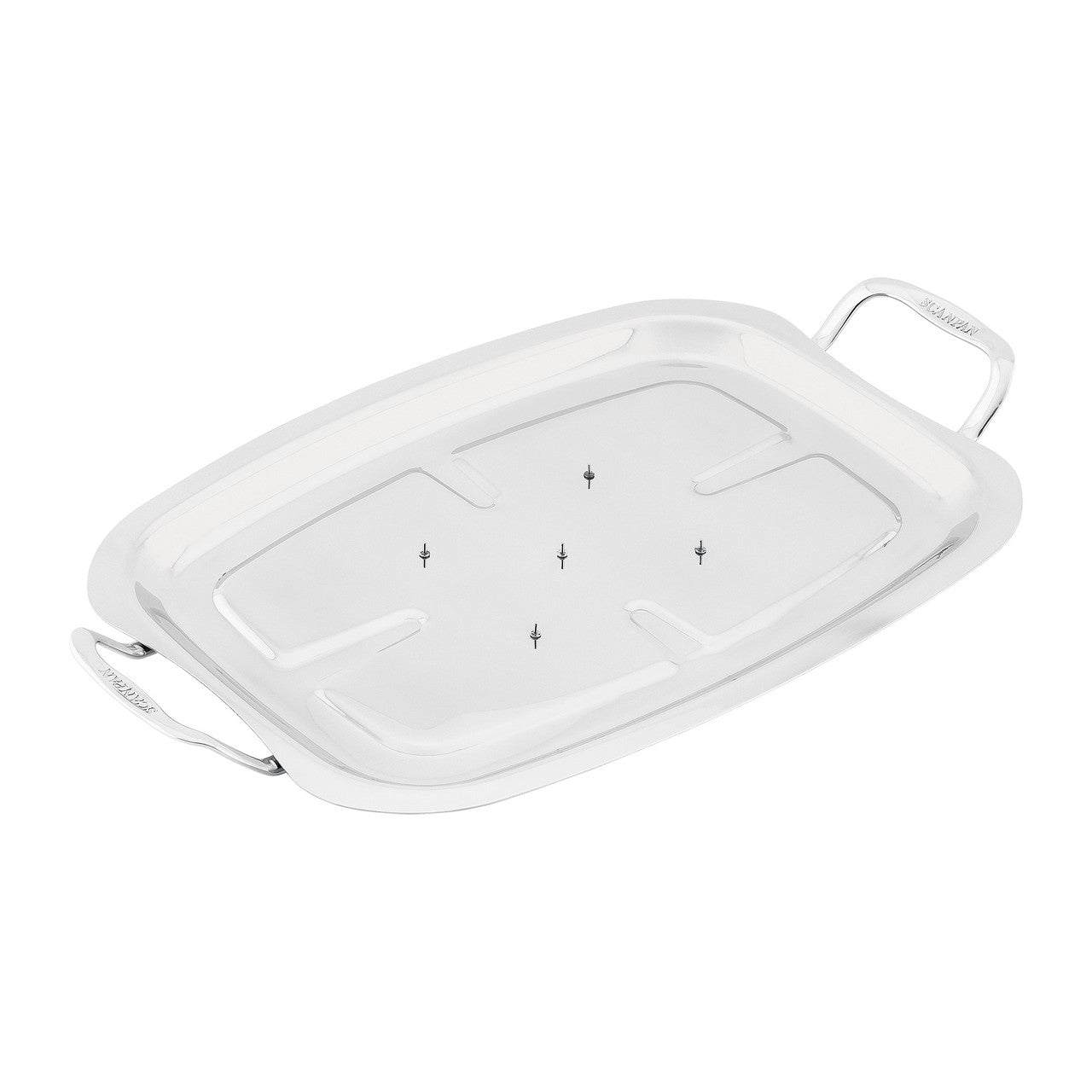 SCANPAN has a number of useful accessories designed to help you make the most of your SCANPAN cookware. From lids for roasters and woks, to racks and splatter guards, there is an accessory in the range to make your SCANPAN cookware piece even more versatile. This 18/10 stainless steel carving tray is a perfect accessory for all occasions. Teamed up with a Classic carving knife and fork, you are ready for the next Sunday roast. This tray can be used from kitchen bench to tabletop.