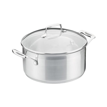 With many years of experience, SCANPAN's Danish designers have developed the popular stainless steel Impact range with all the features you would expect from SCANPAN. This 24cm/4.8L Dutch Oven is a must for any cookware collection and has a stylish two tone matt/polished appearance with a glass lid to enable easy viewing of your cooking in progress. The optimal 6.4mm thick bonded sandwich base ensures optimal heat distribution. Compatible with all energy sources including induction, this range is as wide as it is popular. The rim design allows for drip-free pouring and the handles are secured with heavy duty rivets. The contemporary satin finish suits all kitchen decor and with the internal capacity markings on a polished internal finish making measurement easy and accurate.
