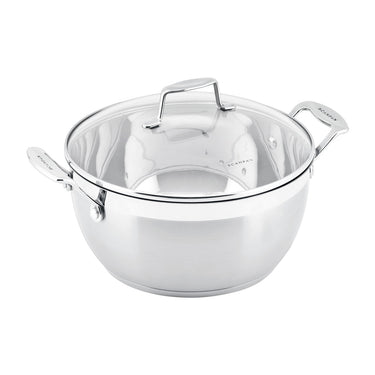 With many years of experience, SCANPAN's Danish designers have developed the popular stainless steel Impact range with all the features you would expect from SCANPAN. This 28cm/6L Covered Stew Pot has elegant lines and has a stylish two tone matt/polished appearance with a glass lid to enable easy viewing of your cooking in progress. The optimal 6.4mm thick bonded sandwich base ensures optimal heat distribution. Compatible with all energy sources including induction, this range is as wide as it is popular. The rim design allows for drip-free pouring and the handles are secured with heavy duty rivets. The contemporary satin finish and polished internal finish suits all kitchen decor.