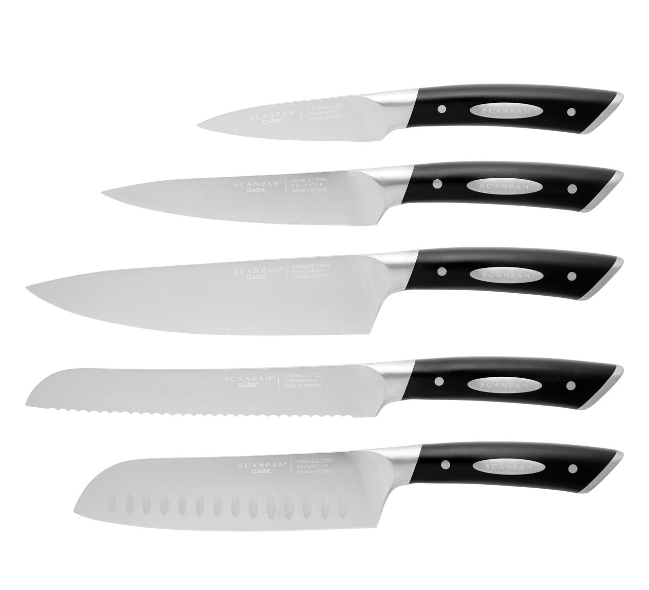 Designed for both style and practicality, the block provides safe, organised, and highly visible knife storage, while the included SCANPAN Classic knives deliver precision, balance, and long-lasting cutting performance.