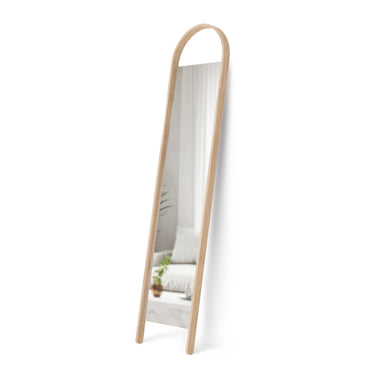 The Bellwood Leaning Mirror is designed to make a refined statement in any room. With its tall, full-length profile and softly arched wooden frame, this mirror combines natural elegance with modern appeal. Crafted from renewable wood sources, it offers a stylish yet sustainable addition to your interior.